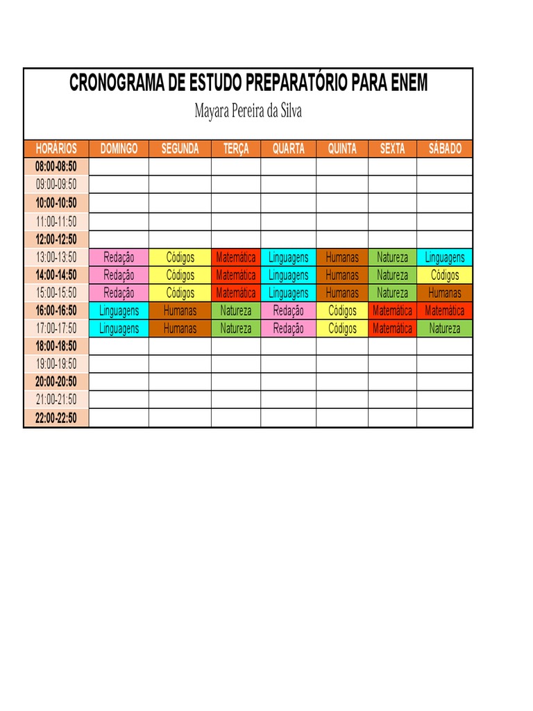 Cronograma de estudos para enem editável. Os especialistas avisam que montar um cronograma de estudos é simples e pode ser feito, inicialmente veja quando serão as inscrições e as provas do enem 2021. Como você já deve saber, o enem conta com provas objetivas. Comece já a se preparar e garanta a sua aprovação! O beduka é um buscador de cursos e faculdades privadas e públicas.